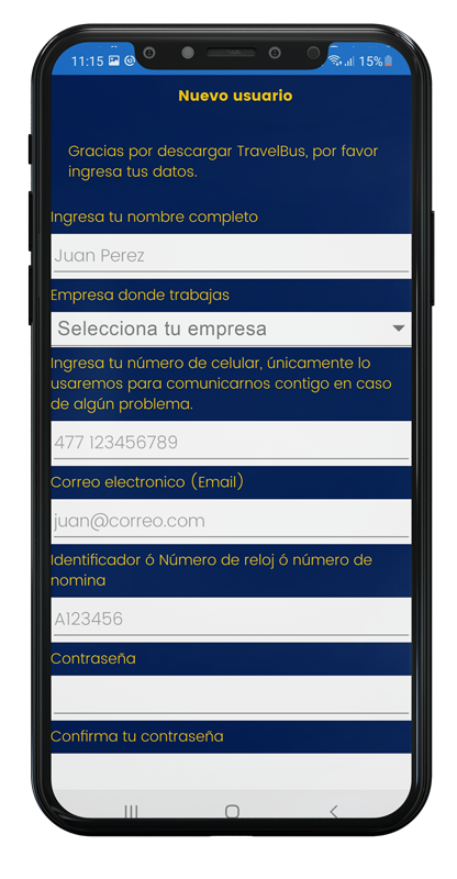 • Nombre, empresa donde trabajas, correo, teléfono y número de nómina.