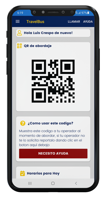 Cada vez que abras la aplicación aparecerá en la pantalla principal un código QR, el que tendrás que presentar al operador de la unidad.