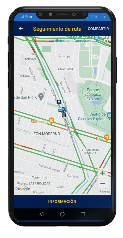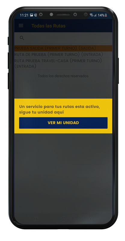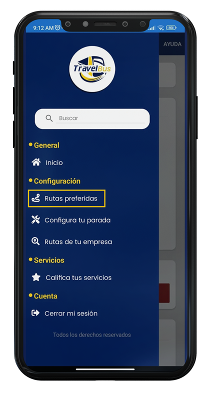 En el menú encontrarás la sección de “Todas las rutas de tu empresa” donde podrás seleccionar la ruta que te hayan asignado y conocer el itinerario de la ruta y la hora en que llegará a tu paradero más cercano.