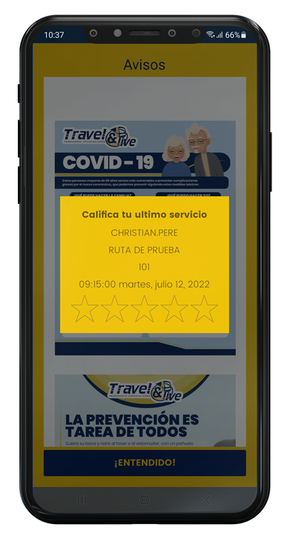 Calificar: servicio, limpieza, comodidad, atención del operador y puntualidad.